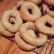 Perhaps in the future when I think they’re baked I might also turn them over and return them to the oven for a few more minutes just to ensure the bagels are baked evenly. As I did find that the bagels were quite wet when they went in the oven so they were slightly soggy when they came out of the oven, but a lot of this moisture dried as they cooled (and I guess adds to their chewiness.)
