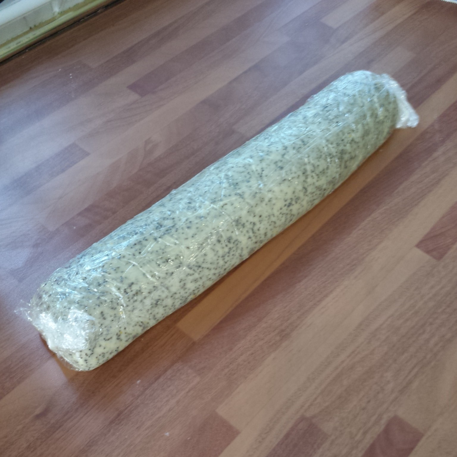 Dough ready for the fridge wrapped in cling film