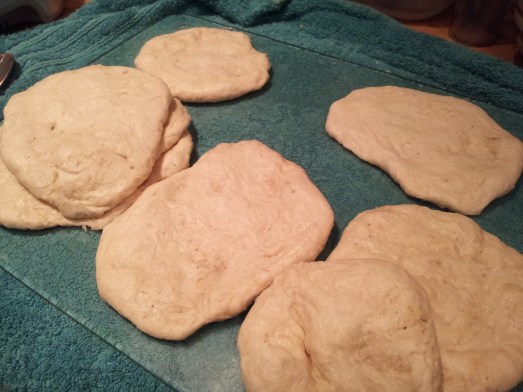 Stacks of semi flattened naan bread dough – must be flatter than this before hitting the pan!
