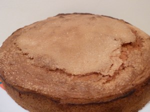 Perhaps I whisked the batter into a frenzy and added too much air? I may have been a bit lazy just using the electric whisk for the entire cake creation process? Perhaps I should have folded in the flour rather than whisking it? The recipe did say that it would deflate after rising so I waited. And waited. And after 45minutes in the oven and a cooling off period. It STILL hasn’t deflated.