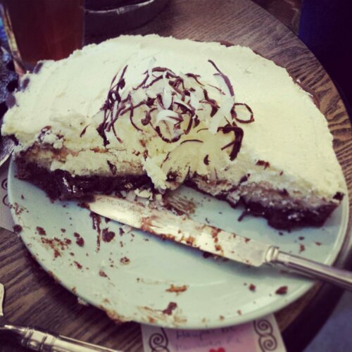 I guess it’s a combination of all 3 to be honest. Nevertheless I took it to cake club to share with my friends and enjoyed an enormous slice of it smothered in whipped cream. Which hides a multitude of sins and disguises the broken bits.